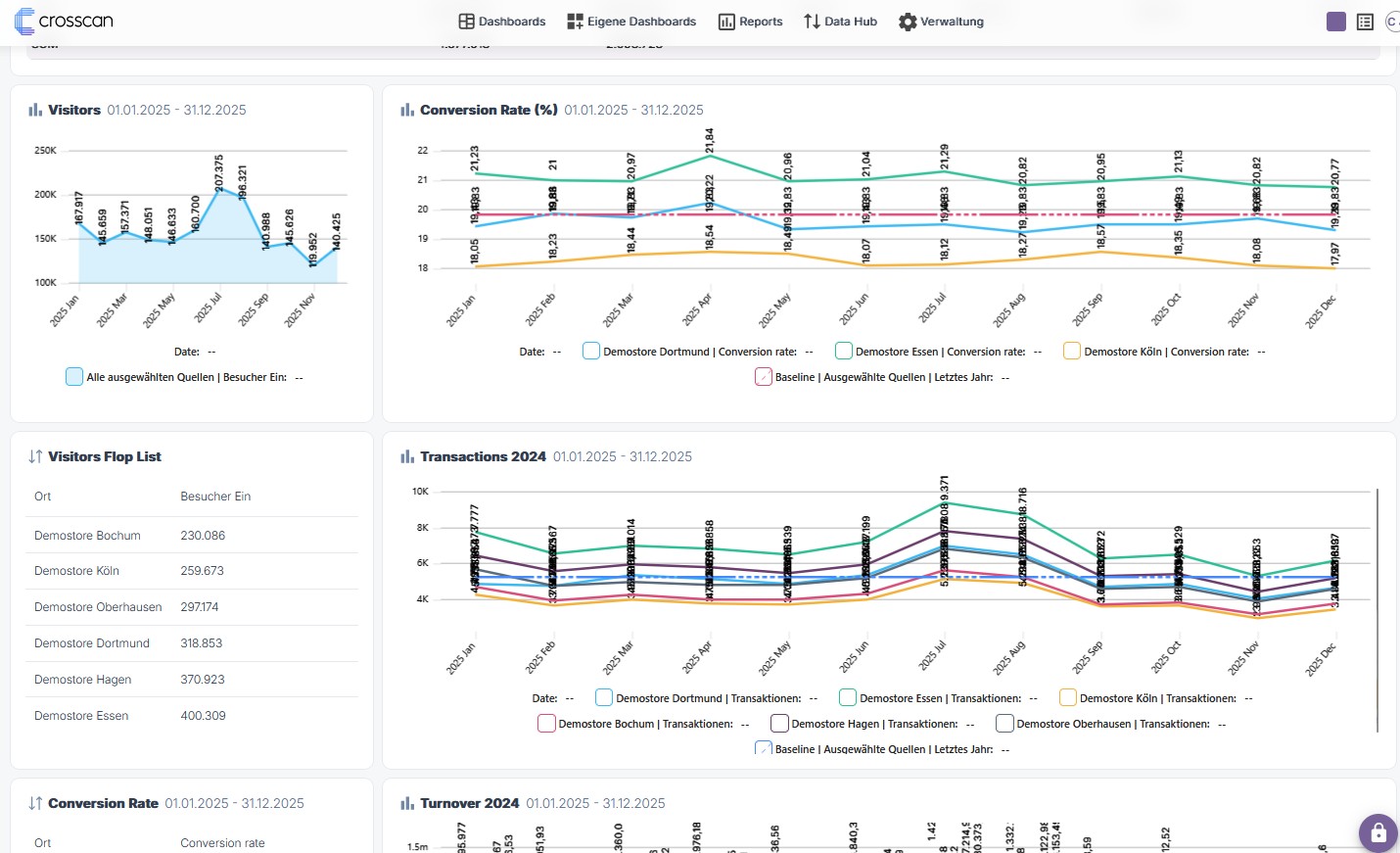 Unternehmensweite Daten und Analysen von Besucherflächen in verständlichen Reports